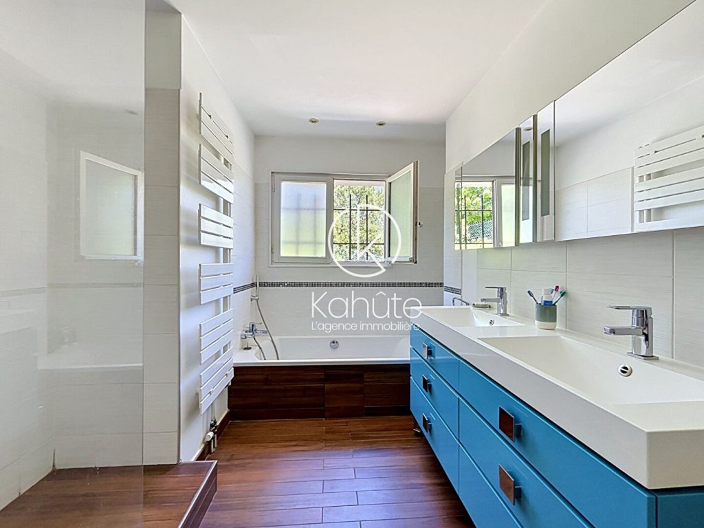 Baignée de lumière, cette demeure séduit dès l’entrée par ses volumes généreux et ses prestations soignées. La pièce de réception, largement ouverte sur l’extérieur par de vastes baies vitrées, prolonge naturellement les espaces de vie vers le jardin et ses terrasses. La cuisine, entièrement aménagée et équipée, allie élégance et fonctionnalité.