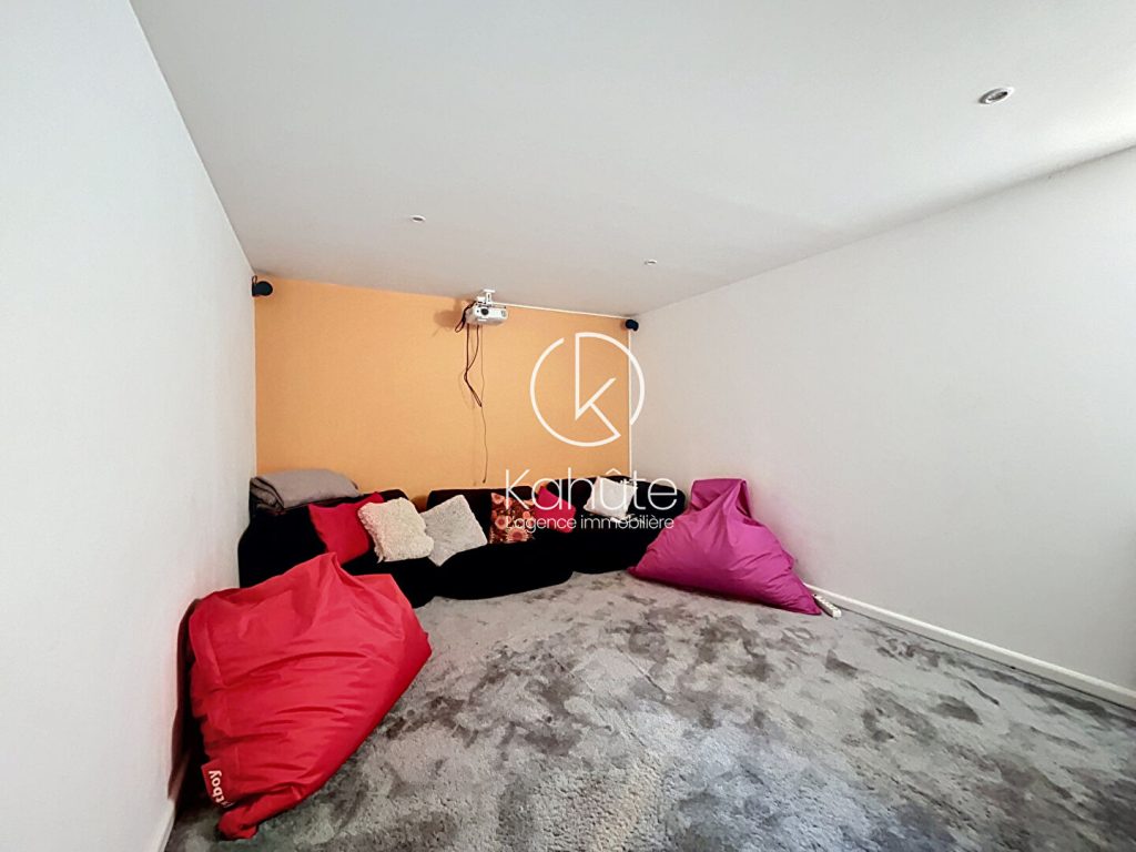 A l’étage inférieur, deux chambres supplémentaires, une salle d’eau, de nombreux rangements ainsi qu’un espace de loisirs ? actuellement aménagé en salle de cinéma ? viennent compléter cet ensemble. Ce niveau accueille également un garage double, un espace buanderie et une chaufferie.